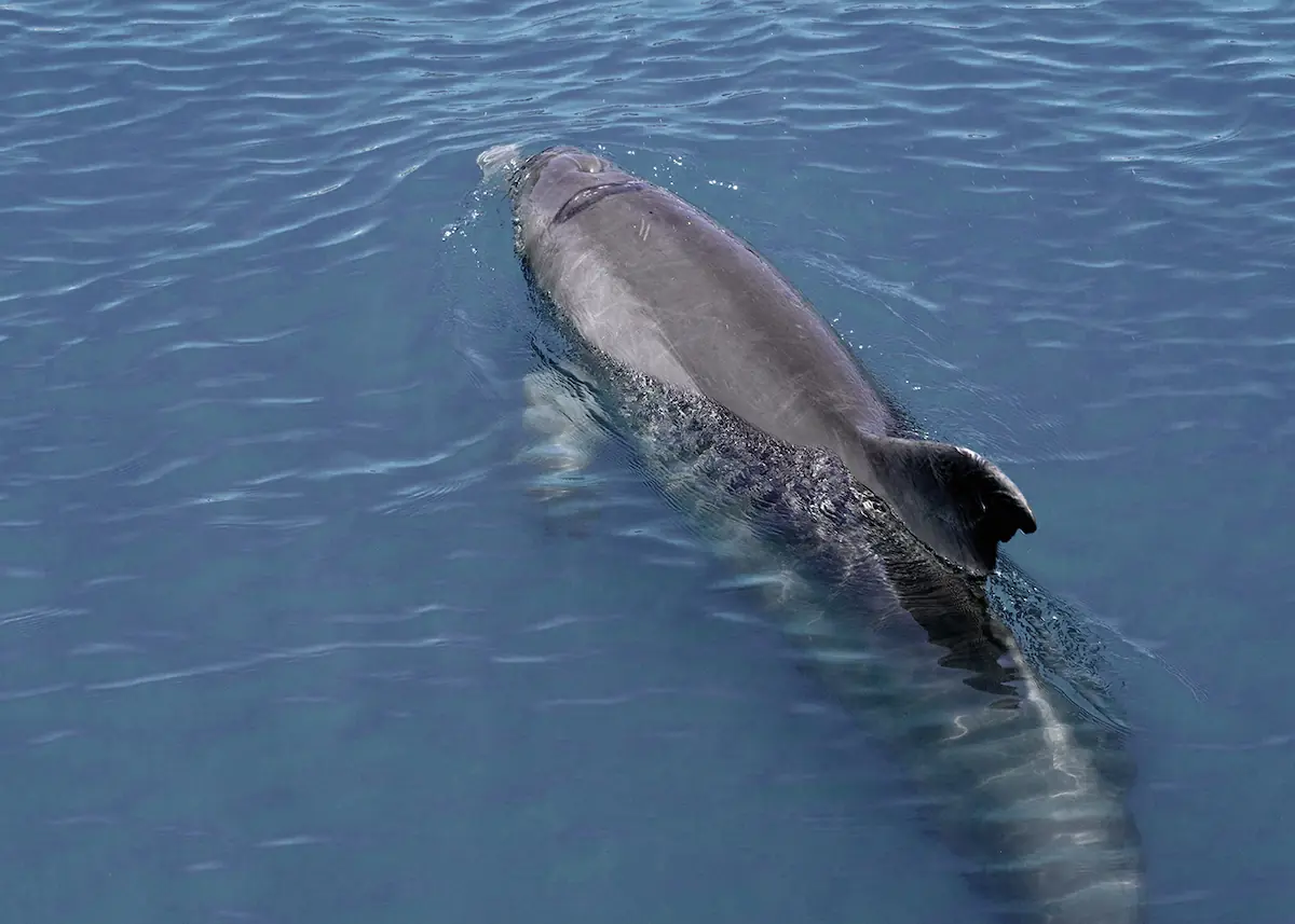 The harbour porpoise is one of the smallest cetaceans in Norwegian coastal waters, often seen alone or in small groups. These shy creatures have a stout body and a small dorsal fin, making frequent short dives to hunt small fish.